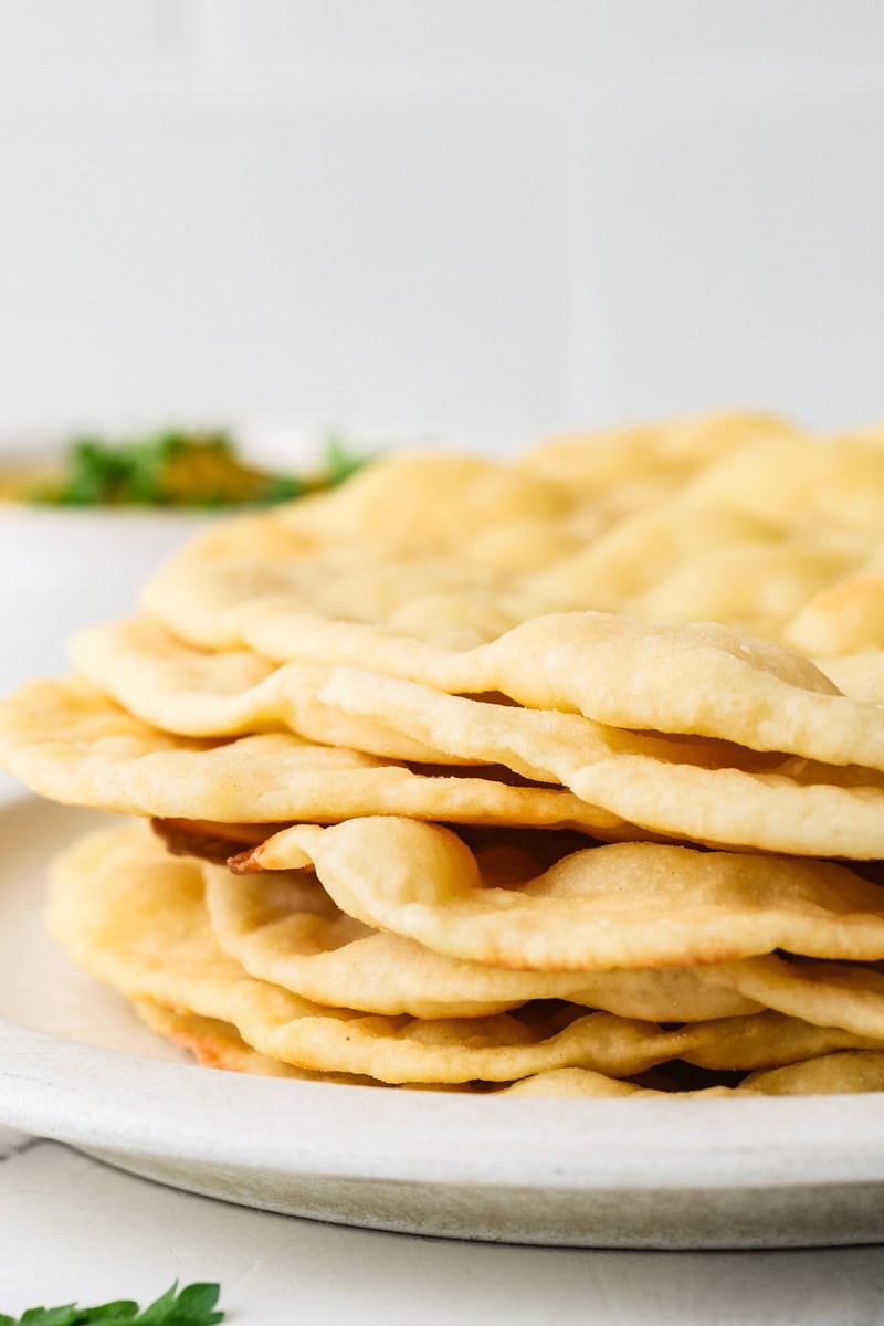 I make these most often to scoop up my spinach dal or dip into my eggplant hummus. They’re also perfect torn into pieces alongside my dense bean salad or as a base for my naan pizza!